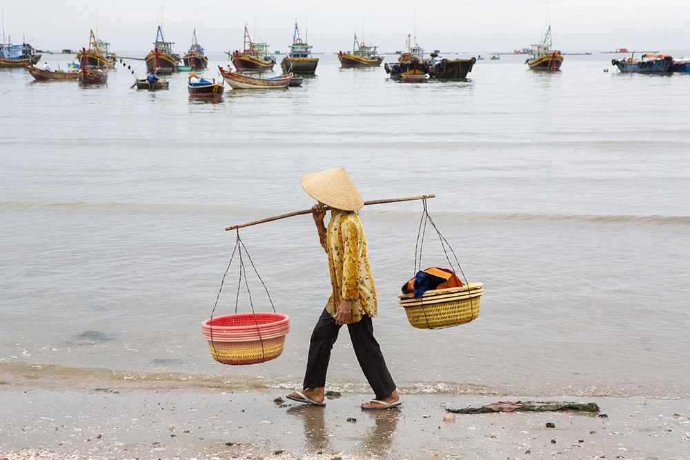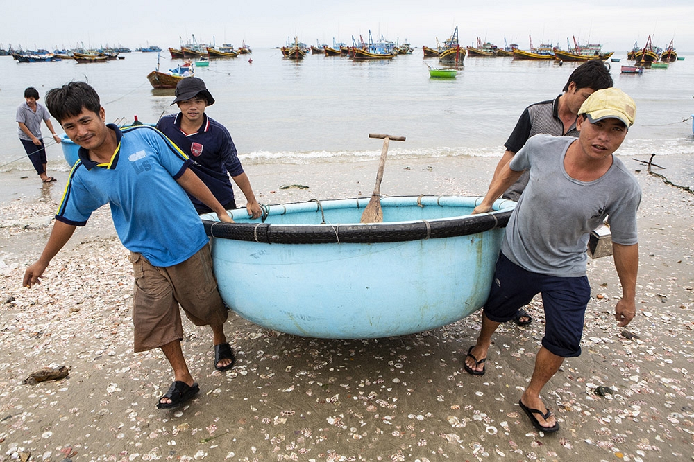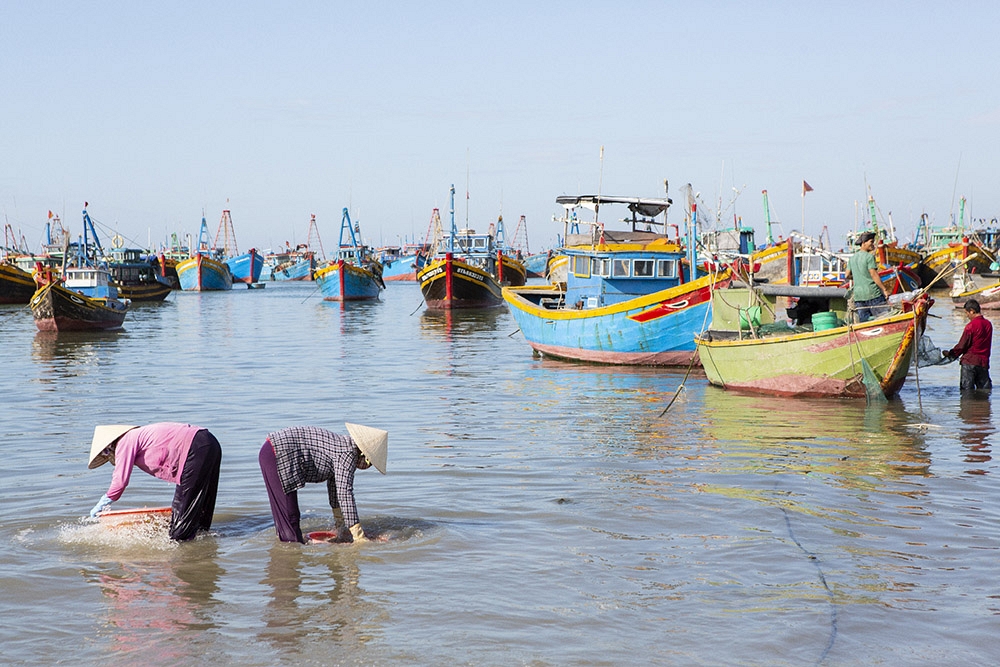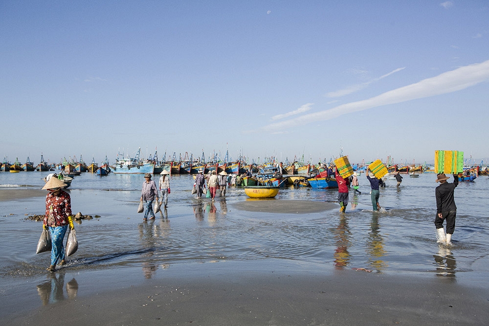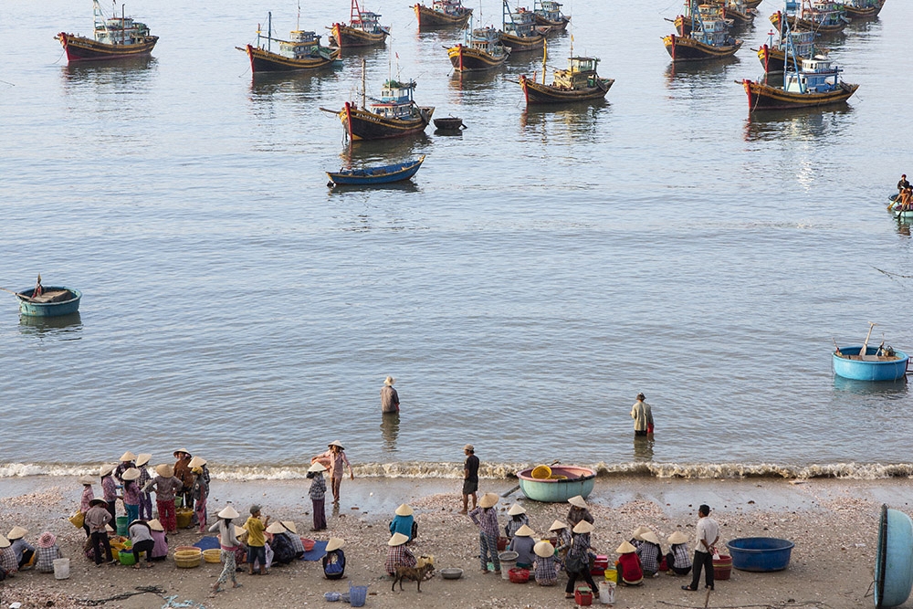 Un des ports de pêche parmi les plus actifs et colorés du Viet Nam se trouve à Mui Ne à environ 200 km au Nord de Hô Chi Minh-Ville. Et pourtant, il ne possède ni d’embarcadère pour l’arrimage des bateaux, ni aucune autre infrastructure qu’on rencontre habituellement dans les ports de pêche du monde entier.