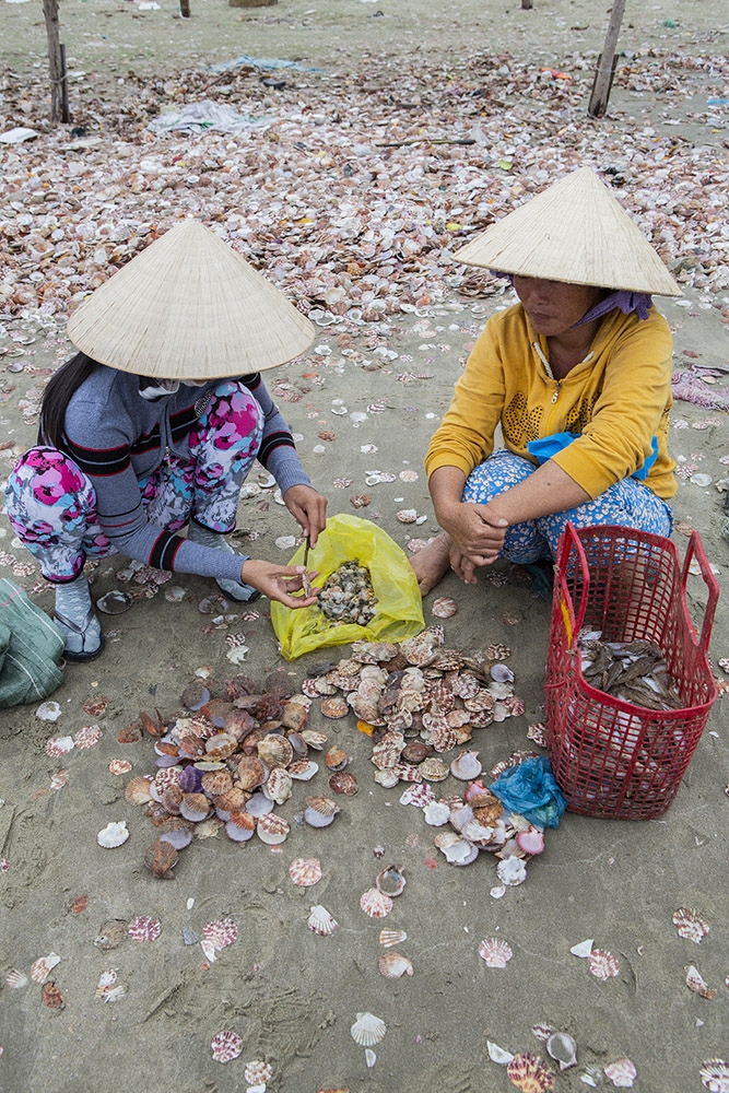 Sur place, la pêche est triée, conditionnée, vendue et même consommée comme en témoignent les innombrables coquillages et déchets de fruits de mer qui jonchent la plage.